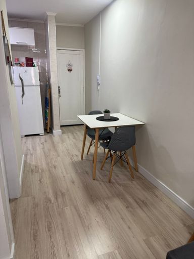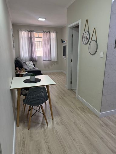 1 dormitório, banheiro social, sala, cozinha e 1 vaga de garagem.