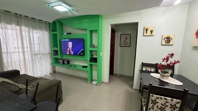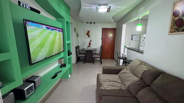 Sendo 1 dormiório, sala dois ambientes, cozinha, banheiro social, área de serviço, sacada gourmet e 1 vaga de garagem.